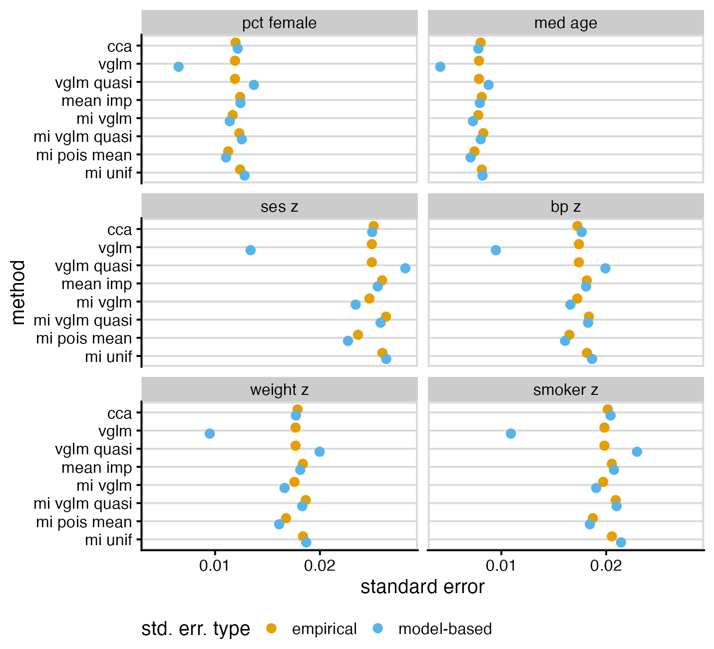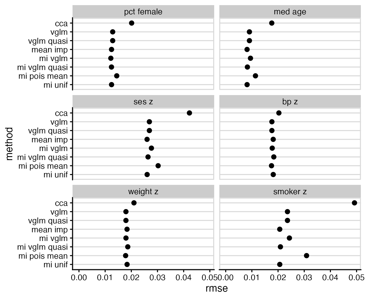 mi vglm quasi, selected inmiceusingmethod = "lcquasipoisson") or uniform (mi unif, selected inmiceusingmethod = "uniform")